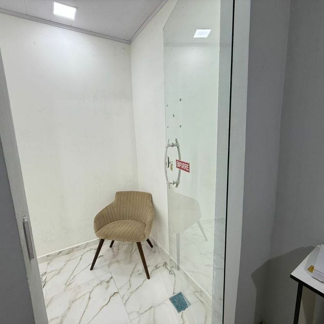O imóvel conta com uma sala ampla com blindex, ideal para recepção, atendimento ou escritório, e banheiro de uso privativo, oferecendo praticidade e conforto no dia a dia.