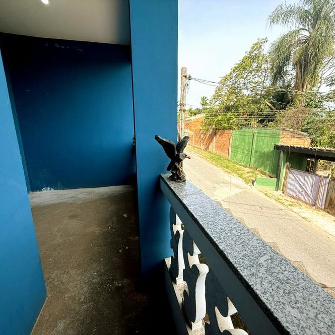 Varanda no segundo andar com vista privilegiada para a rua;